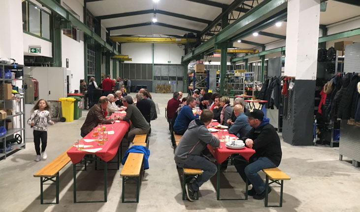 - Erfordernis: Mitarbeiter stehen bei ihrer Arbeit an den Werkbänken und sollten es dort angenehm haben. Zusätzlich hohe Belastung am Boden wenn ein schwerer Elektromotor mit LKW in die Halle gefahren wird